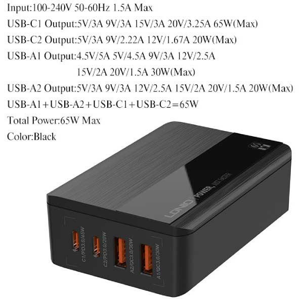 شارژر رومیزی 65W الدینیو مدل A4808Q