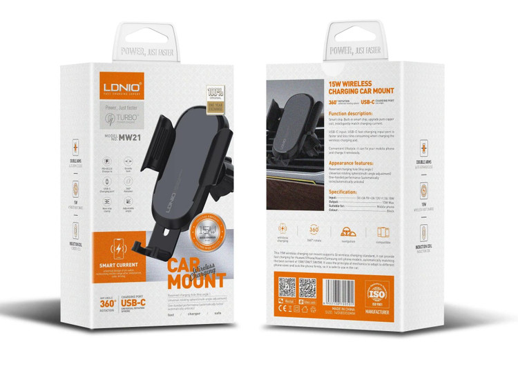 پایه نگهدارنده و شارژر بیسیم الدینیو مدل MW21-1 ترکیبی از طراحی مدرن، عملکرد چندمنظوره و کیفیت ساخت بالاست که برای استفاده در خودرو یا حتی روی میز کار گزینهای جذاب محسوب میشه. این مدل با توان شارژ ۱۵ وات از فناوری Fast Charge QC3.0 پشتیبانی میکنه و با گوشیهایی که از شارژ وایرلس استاندارد Qi بهره میبرند، کاملاً سازگاره.