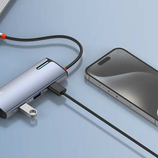 هاب ۶ پورت تایپسی الدینیو مدل DS-16H یک گزینه کاربردی و خوشساخت برای کسانیست که به دنبال افزایش پورتهای لپتاپ یا تبلت خود هستند، بهویژه اگر دستگاهشان فقط یک درگاه Type-C داشته باشد. این هاب با طراحی جمعوجور و رنگ خاکستری مدرن، شش خروجی متنوع را در اختیار شما قرار میدهد: سه پورت USB 3.0 با سرعت انتقال داده تا ۵ گیگابیت بر ثانیه، یک پورت HDMI با پشتیبانی از رزولوشن 4K@30Hz، یک درگاه شبکه LAN گیگابیتی (RJ45)، و یک پورت Type-C که از شارژ سریع PD تا توان ۱۰۰ وات پشتیبانی میکند. این ترکیب باعث میشود بتوانید همزمان به اینترنت کابلی متصل شوید، تصویر لپتاپ را روی مانیتور بزرگتر ببینید، حافظههای جانبی یا دانگلها را وصل کنید، و دستگاهتان را با سرعت بالا شارژ کنید.
