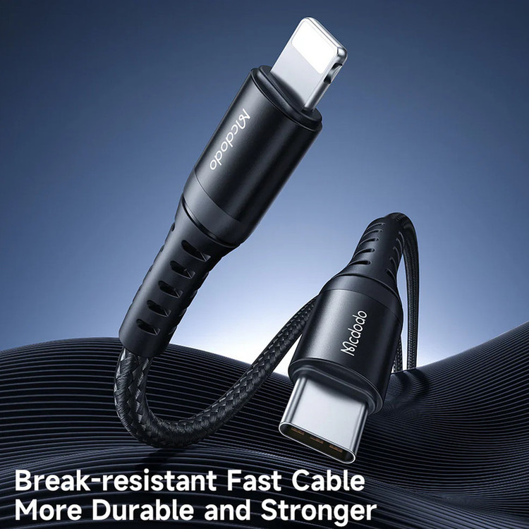 کابل Type C به Lightning مک دودو Mcdodo CA-563 دارای طول یک متر و حداکثر شدت جریان 3 آمپر می باشد. این محصول مک دودو با سیمی از جنس نایلون بافته شده دارای کیفیت بسیار عالی و طول عمر بالایی میباشد.