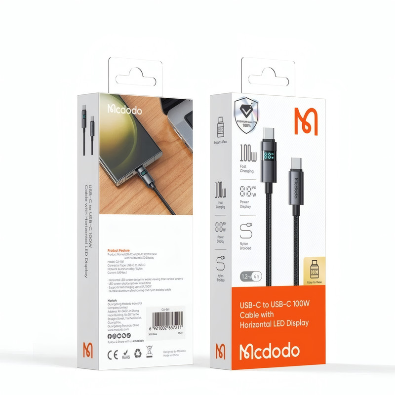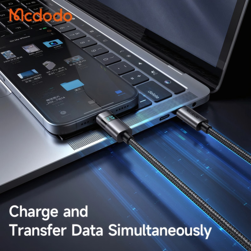 کالای اورجینال مک دودو، واردات انحصاری تیم تکنیک تل | استفاده از فناوری SR Reinforced Treatment در تولید محصول که کابل را در برابر شکستگی و آسیبهای ناشی از فشار مقاوم میسازد | قابلیت انتقال جریان با توان 100 وات و جریان 5 آمپر | دارای نمایشگر LED