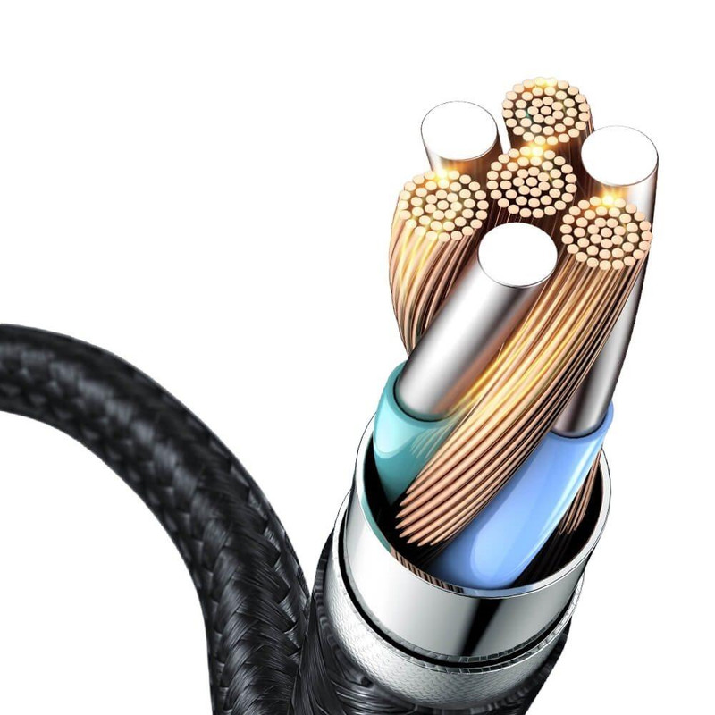 بدنه از جنس نایلون بافته شده با کیفیت و دوام بسیار بالا - مقاومت بالا در برابر خم شدن های پی در پی به علت جنس بدنه و همچنین وجود محافظ در قسمت اتصال سیم به سوکت ها - پشتیبانی از توان خروجی حداکثر 3 آمپر