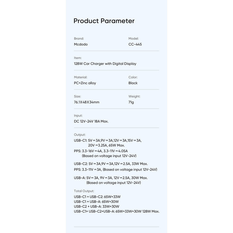 شارژر فندکی 128 وات مک دودو مدل CC-445