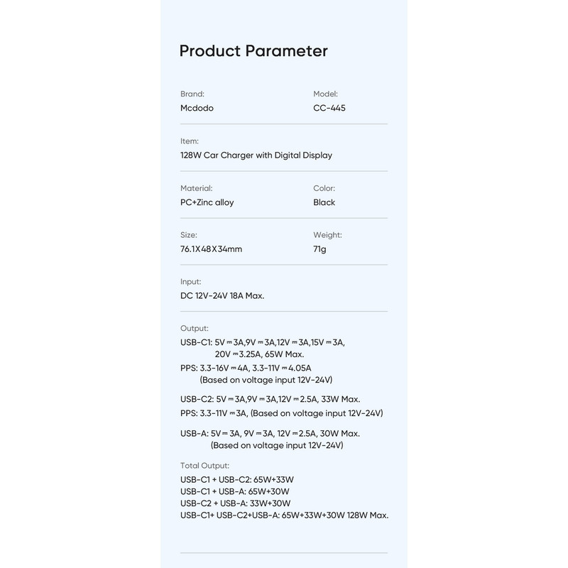 شارژر فندکی 128 وات مک دودو مدل CC-445