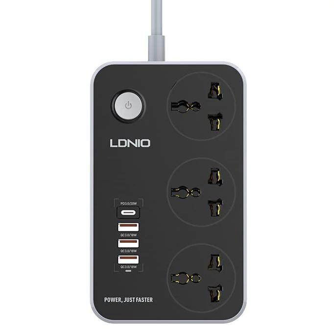 سه راهی برق الدینیو SC-3412اولین سه برق 20وات جهان میباشد. با توجه به گسترش کاربرد وسایل الکترونیکی در کارهای روزمره، بشر به پریزهای برق بیشتری نیاز پیدا کردکه این مشکل را چندراهیهای برق حل کردند. در اولین قدم برای بررسی چندراهی باکیفیت الدینیو مدل LDNIO SC3412 به سراغ وضعیت ظاهری و فیزیکی آن میرویم،همانطور که از کیفیت ساخت و سابقه درخشان این برند انتظار میرود، بدنه بیرونی این وسیله از جنس پلاستیک مقاوم و باکیفیت است.این سه راهی ضد آتش سوزی طراحی شده و توانایی تحمل 850 درجه را داراست. یکی دیگر از خصوصیات ظاهری این وسیله دکمه پاور است که روی بدنه قرار دارد و شما با آن میتوانید در مواقع لزوم چندراهی را خاموش و روشن کنید طول کابل نیز عامل دیگری است که دامنه استفاده شما را بهبود میبخشد.طول کابل LDNIO SC3412 حدوداً 2 متر است و برای استفاده روزانه مناسب است. ابعاد دستگاه 138x 90x 43 میلیمتر است که برای قرار گرفتن روی میز و هرجایی که با کمبود فضا روبهرو هستید مناسب است.این وسیله وزن قابل قبولی نیز دارد شرکت الدینیو این چند راهی را با وزن 390 گرم به بازار عرضه کرده است این دستگاه نشانگر LED نیز دارد. چندراهی برق الدینیو یک وسیله بسیار کاربردیدر این چندراهی سه پریز برق تعبیه شده که در ادامه به بررسی آنها میپردازیم در کنار پریزهای برق ورودیهای USB نیز در روی بدنه تعبیه شده که به کارایی این چندراهی میافزاید.به این صورت با سه پریز برق و4 ورودی USB (با پشتیبانی از فناوری های PDوQC3.0) شما یک وسیله چندکاره خواهید داشت. تعداد پریزهای برق چند راهی تا حد معمول آن بسیار پرکاربرد است و اگر از تعدادی بیشتر شود ایمنی دستگاه کم میشوداین چندراهی سه پریز برق کاملاً ایمن دارد. هر سه این پریزها به پایههای ارت مجهز هستند. پوشش محافظ کودک امتیاز دیگری است که چندراهی LDNIO SC3412 Power Strip را از سایر چندراهیها متفاوت میکند.