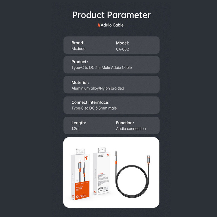 کابل تبدیل USB-C به AUX مک دودو مدل CA-0820 طول 1.2 متر