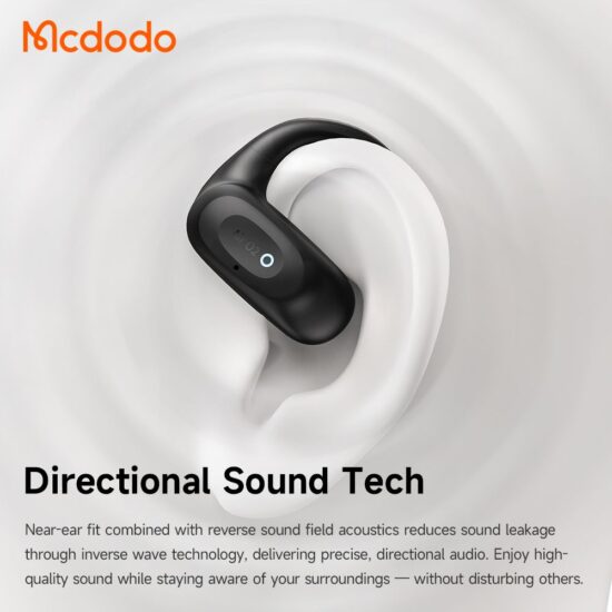 هندزفری بلوتوثی مکدودو مدل HP-805 یا Air O2 یک هندزفری بیسیم با طراحی بازگوش (Open-Ear) است که به جای قرار گرفتن داخل گوش، روی لبهی گوش قرار میگیرد. این طراحی باعث میشود بدون قطع ارتباط با محیط اطراف، بتوانید موسیقی یا پادکست گوش دهید — گزینهای عالی برای دویدن، دوچرخهسواری، رفتوآمد و استفاده طولانیمدت.