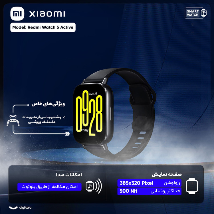 ساعت هوشمند 49 میلی متری شیائومی مدل Redmi Watch 5 Active