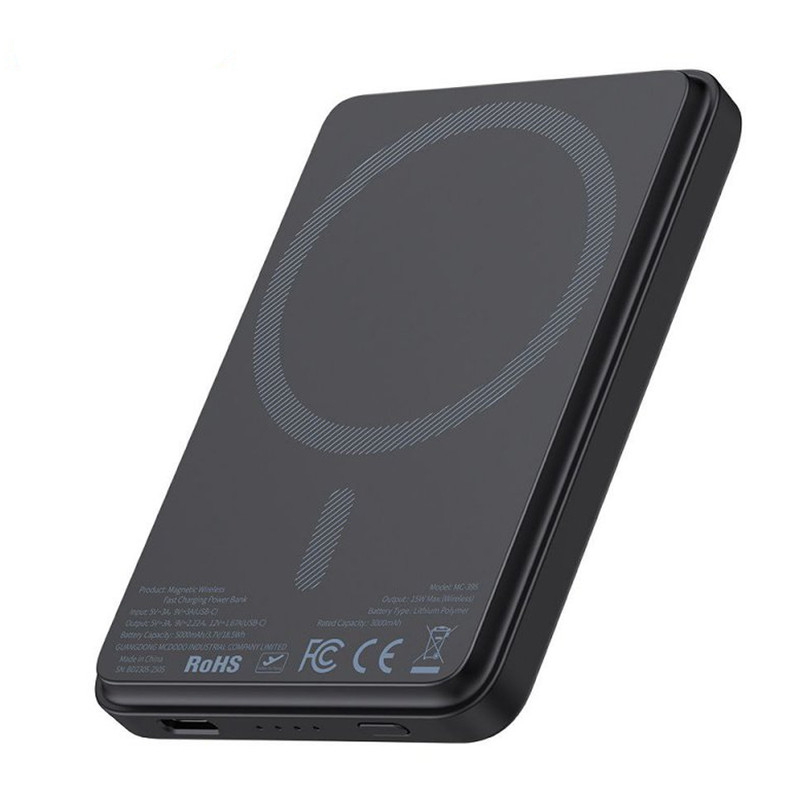 شرکت مک دودو یکی از شرکت های تولید کننده لوازم جانبی موبایل، تبلت و ... می باشد و به تازگی پاوربانک مک دودو مدل MC-395 ظرفیت 5000 میلی آمپر ساعت را طراحی و در بازار عرضه کرده است. پاوربانک مک دودو مدل MC-395 ظرفیت 5000 میلی آمپر ساعت مناسب گوشی های آیفون 12 و جدیدتر است. این محصول به صورت مگنتی به گوشی متصل میشود و شارژ به صورت وایرلس انجام می شود. حداکثر توان خروجی وایرلس در پاوربانک مک دودو مدل MC-395 ظرفیت 5000 میلی آمپر ساعت، 15 وات می باشد. یک پورت Type C نیز بر روی این محصول وجود دارد که هم برای شارژ کردن و هم برای شارژ شدن با توان 20 وات قابل استفاده است. البته باید دستگاه شما از این توان و تکنولوژی فست شارژ پشتیبانی کند. پاوربانک مک دودو مدل MC-395 ظرفیت 5000 میلی آمپر ساعت دارای ابعاد 14x64x95 میلیمتر و وزنی حدود 130 گرم است و به راحتی می توانید آن را حمل کنید. جنس بدنه ی این محصول از پلی کربنات ضد حریق ساخته شده و همینطور دارای چراغ LED برای نمایش میزان شارژ است. ورودی تایپ سی : 5V⎓3A | 9V⎓3A خروجی تایپ سی: 5V⎓3A | 9V⎓2.22A | 12V⎓1.67A خروجی وایرالس : ماکزیمم 15W ظرفیت واقعی این پاوربانک 5000 میلی آمپر است و بسته به ولتاژ خروجی دستگاههای شما، حدودا در رنج 2500 تا 3500 میلی آمپر خواهد بود.