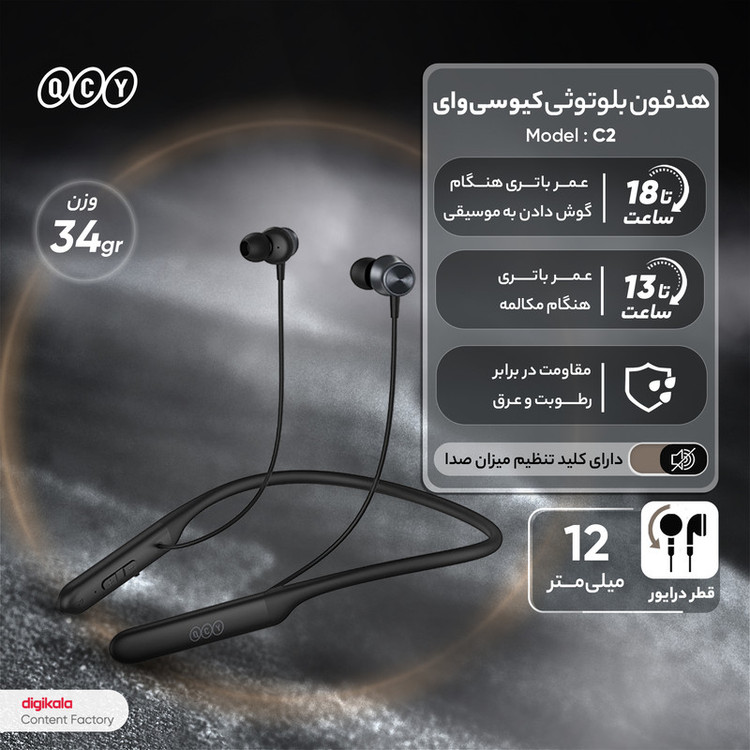 هندزفری گردنی یک انتخاب جذاب برای کسانی است که میخواهند هندزفری بلوتوثی و بیسیم داشته باشند و در عین حال به دنبال یک گزینه قابل اطمینان میگردند که به راحتی از گوش نیفتد و گم نشود. هدفون بلوتوثی کیو سی وای مدل C2 یکی از مدلهای هندزفری گردنی باکیفیت است که با خیال راحت میتوانید روی آن حساب کنید. این هندزفری با این که قیمت معقول و مناسبی دارد، از ویژگیهای فنی خوبی هم بهره میبرد که ارزش خرید بالایی به آن داده است. به لطف بلوتوث 5.2 خیلی سریع و بدون تاخیر میتوانید به آن وصل شوید و از ویژگیهای آن بهره ببرید. بدنه با مقاومت در برابر تعریق و رطوبت در کنار سریهای مگنتی و ساخت باکیفیت خیال شما را از هر نظر راحت میکند و برای شنیدن موسیقی با وضوح بالا و مکالمه شفاف و بدون نویز هم میتوانید روی آن حساب باز کنید.