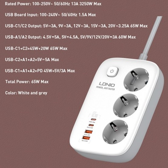 توان کلی خروجی این چندراهی ۲۵۰۰ وات با جریان ۱۰ آمپر است و با ولتاژ ورودی ۱۰۰ تا ۲۵۰ ولت، عملکردی پایدار در شرایط مختلف برق ارائه میدهد. وجود تراشه هوشمند Auto-ID باعث تنظیم جریان مناسب برای هر دستگاه میشود و از نوسانات برق، اتصال کوتاه، اضافهبار و افزایش دما جلوگیری میکند. همچنین کلید روشن و خاموش دستی، کابل برق ضخیم ۲ متری، محافظ کودک و نشانگر LED از دیگر ویژگیهای کاربردی این مدل هستند.