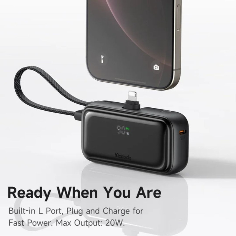 پاوربانک Mcdodo MC-7800 سری Freekit با ظرفیت ۵۰۰۰ میلیآمپرساعت (۱۸.۵ واتساعت) و طراحی هوشمندانهای که شامل کابل USB-C داخلی و مبدل Lightning داخلی است، منبع انرژی ایدهآل و جمعوجوری برای کاربرانی است که میخواهند بدون همراه داشتن کابل، گوشیهای آیفون و دستگاههای USB-C را بهسادگی شارژ کنند. نمایشگر دیجیتال دقیق تعبیهشده در این دستگاه، وضعیت شارژ را لحظهای به شما اطلاع میدهد تا بهتر بتوانید مدیریت انرژی داشته باشید. توان ورودی دستگاه تا ۱۸ وات (با ولتاژهای 5V⎓3A، 9V⎓2A و 12V⎓1.5A) بوده و در خروجی ظرفیت ارائه تا ۲۲.۵ وات را دارد؛ کانال USB-C (چه کابل داخلی و چه پورت) از فناوریهایی مثل QC، PD و SCP پشتیبانی میکند و جریانهایی مانند 5V⎓3A، 9V⎓2.22A، 10V⎓2.25A و 12V⎓1.67A را تامین مینماید. از طرفی، خروجی Lightning هم توانایی شارژ تا 20 وات و ولتاژهای 5V⎓2.4A و 9V⎓2.22A را داراست، و در هنگام شارژ همزمان، مجموع جریان تا 5V⎓3A فراهم میشود . با وزن سبک حدود ۱۰۴ گرم، این پاوربانک همراهی بیدغدغه برای سفر، محل کار یا استفاده روزمره است. استفاده از مواد با کیفیت، طراحی جمعوجور، نمایشگر LED و سیستمهای حفاظتی داخلی مانند جلوگیری از اتصال کوتاه، اضافهبار و داغ شدن، آن را به گزینهای مطمئن و کاربرپسند تبدیل کرده است. اگر به دنبال پاوربانکی هستید که هم کوچک باشد، هم سریع و دقیق شارژ کند، و خیالتان از شارژ دستگاههای مختلف راحت باشد، Mcdodo MC-7800 انتخاب هوشمندانهای برای شماست.