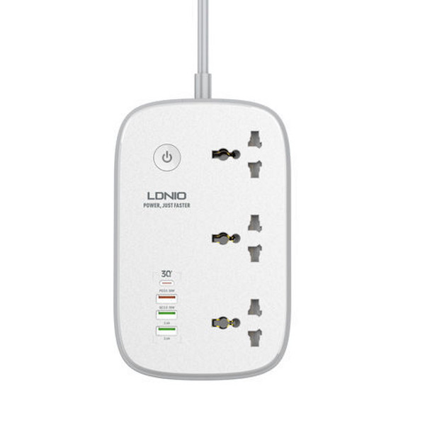 این روز ها حتی در زندگی روزمره تمام افراد استفاده از دستگاه های الکترونیکی افزایش یافته است. به همین علت برای تامین انرژی آن ها به لوازم جانبی نظیر چند راهی و محافظ های برق بیشتر از گذشته احتیاج پیدا خواهیم کرد. چند راهی الدنیو LDNIO SCW3451 بهترین انتخاب برای میز کار افراد می باشد. این چندراهی دارای 3 خروجی برق، 3 خروجی یو اس بی و 1 خروجی تایپ سی است. همینطور از دیگر قابلیت های این چندراهی می توانیم به ارتباط WIFI برای کنترل از راه دور توسط موبایل اشاره نماییم.چندراهی LDNIO SCW3451 از پلاستیک ABS و PC تولید گردیده. این چند راهی از 3 خروجی برق و 4 پورت شارژ شامل 3 خروجی یو اس بی و 1 خروجی تایپ سی بهره مند است. چندراهی برق الدینیو دارای ابعادی برابر با 177x112x87 میلی متر است.خروجی های برق این محصول نیز یونیورسال هستند و از سازگاری با دوشاخه های UK، US و EU بهره مند می باشند. وجود این خروجی ها شما را از تهیه و خرید تبدیل برق بی نیاز می کند. این محصول دارای سیم ضخیم و مقاومی برابر با طول 2 متر می باشد.جهت تنظیم میزان جریان برق یک کلید مرکزی بر روی چندراهی برق الدینیو SCW3451 تعبیه شده است. هر زمان خطر جریانی این چندراهی را تهدید کند با به راه افتادن فعالیت این کلید از SCW3451 محافظت خواهد شد. این کلید برای وصل کردن گوشی همراه به چند راهی نیز قابل استفاده است.ولتاژ ورودی این محصول تقریبا برابر 100 تا 250 ولت و بیشترین جریان ورودی آن 10 آمپر است. پورت تایپ سی این محصول دارای قابلیت شارژ سریع PD است. همینطور این پورت از جریان/ولتاژ خروجی 5V/3A-9V/3A-12V/2.5A-15V/2.5A با بیشترین توان خروجی 30 وات بهره مند می باشد.یکی از خروجی های یو اس بی نارنجی رنگ به کار رفته در این محصول قادر به پشتیبانی از شارژ سریع QC است. این پورت مجهز به جریان/ولتاژ خروجی 5V/3A-9V/2A-12V/1.5A با بیشترین توان خروجی 18 وات است.پورت های خروجی USB سبز رنگ نیز هر کدام از فناوری Auto ID بهره مند هستند. در این پورت ها جریان/ولتاژ خروجی 5V/2.4A است.از تفاوت های اصلی این دستگاه با نمونه های دیگر قابلیت اتصال و کنترل از روی گوشی هوشمند - قطع و وصل کردن جریان برق - بدنه ضد حریق استفاده از مس در ساخت پایه ها برای دوام و کیفیت بهتر قابلیت اسمارت گارد برای جلوگیری از ورود ولتاژ ناخواسته به دستگاه های شما می باشد