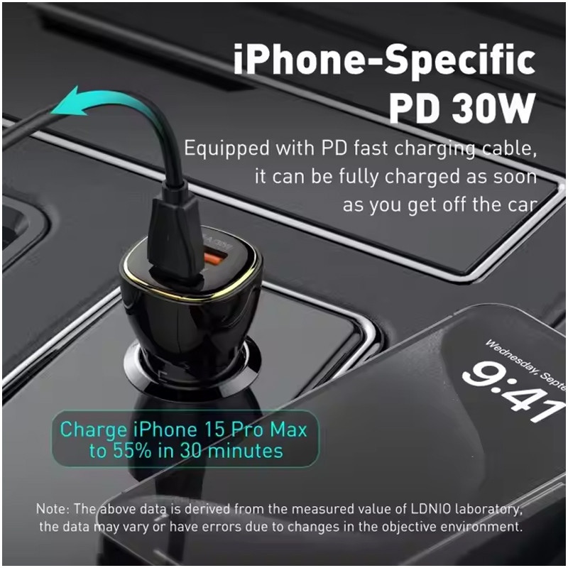 از مشکلات تمامی افراد در سفر، خالی شدن شارژ تلفن همراه است. شرکت الدینیو از جمله شرکت های به نام در عرصه تولید لوازم جانبی است که به تازگی شارژر فندکی 60 وات الدینیو مدل C103 همراه با کابل USB-C را طراحی و به بازار ارایه داده است. توان خروجی کلی این شارژر 60 وات است. همچنین جنس بدنه آن از پلی کربنات ساخته شده که مقاوم در مقابل آتش است. روی بدنه شارژ فندکی الدینیو یک پورت USB-A و یک پورت USB-C تعبیه شده که حداکثر توان هر پورت 30 وات است و همچنین دارای تکنولوژی شارژ سریع PD ، PPS و QC3.0 است که شما می توانید از آن برای شارژ سریع تر گوشی خود استفاده کنید. شما به کمک این شارژ فندکی میتوانید انواع گوشیهایی را که از تکنولوژی فست شارژ QC3.0 پشتیبانی میکنند، را با سرعت بالا شارژ کنید. این محصول دارای ابعاد کوچک و وزن بسیار کمی می باشد و همچنین یک کابل USB-C یک متری نیز داخل پک این محصول قرار گرفته است که شما را از تهیه کابل بی نیاز میکند همچنین یک حلقه فلزی طلایی رنگ در قسمت بالایی آن وجود دارد که آن را جذاب کرده است. INPUT : DC12-24V 6A MAX USB-C OUTPUT : 5V/3A, 9V/3A,12V/2.5A,15V/2A, 20V/1.5A (30W Max) PPS : 3.3V-5.9V/3A, 3.3V-11V/3A(30W Max) USB-A OUTPUT : 5V/3A, 9V/3A,12V/2.5A (30W Max) TOTAL POWER : 60W MAX یکی از ویژگیهای این محصول، که آن را از بسیاری از محصولات مشابه در بازار متمایز میکند، قابلیت Turbo Power Engine است. این قابلیت کمک میکند که بسته به دستگاهی که به این شارژر فندکی وصل میشود، بالاترین توان برای شارژ آن تامین شود.