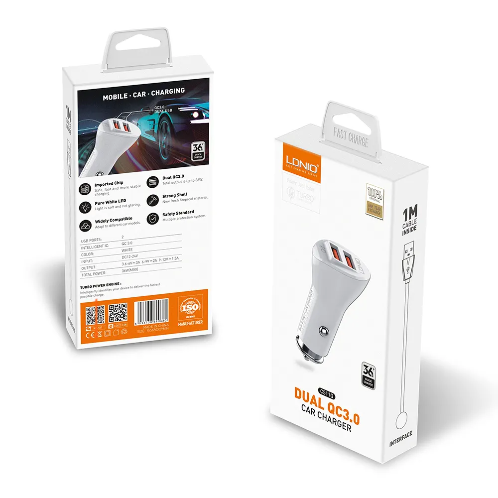 شارژر فندکی الدینیو مدل C511Q با توان ۳۶ وات یکی از مدلهای خوشساخت و ایمن برای شارژ سریع در خودروست. این شارژر دارای دو پورت خروجی USB-A است که هر دو از فناوریهای QC3.0 و PD3.0 پشتیبانی میکنند، بنابراین میتوانند گوشیهایی مثل آیفون، سامسونگ، شیائومی و سایر دستگاههای مدرن را با سرعت بالا شارژ کنند.